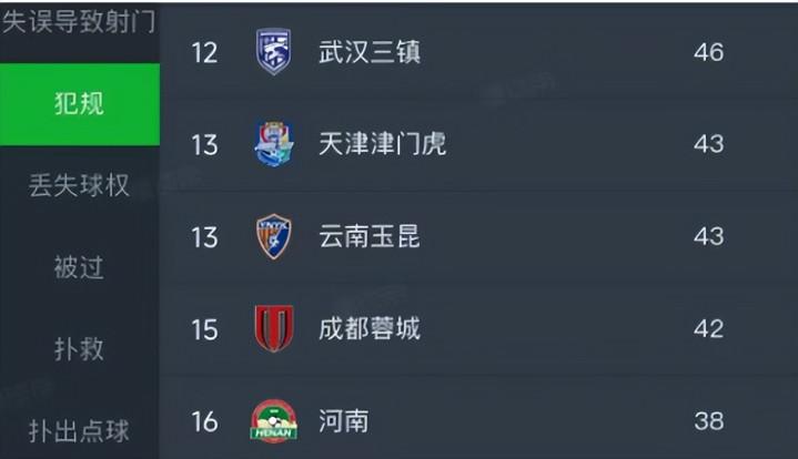 然而比积分更耐人寻味的,是两队在场上的风格分野。根据截至第4轮的中超数据统计,山东泰山以79次犯规高居联赛榜首,而河南队仅犯规38次,在全中超垫底。